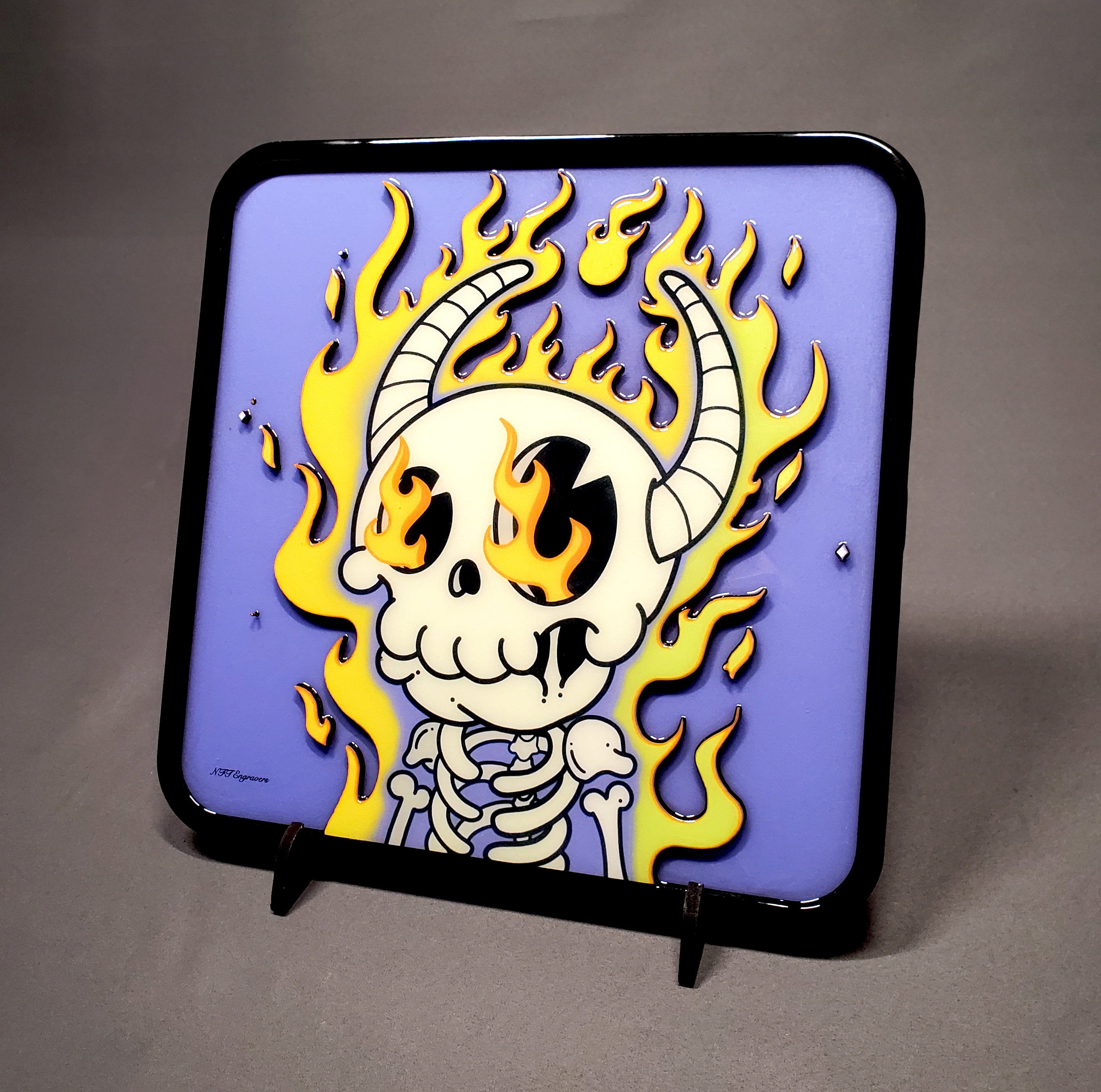 Each NFTEngraving™ is our signature wooden 3d laser cut object which you can choose to get haind-painted or printed. You can then choose to add a high gloss epoxy for extra protection and a shimmering effect.